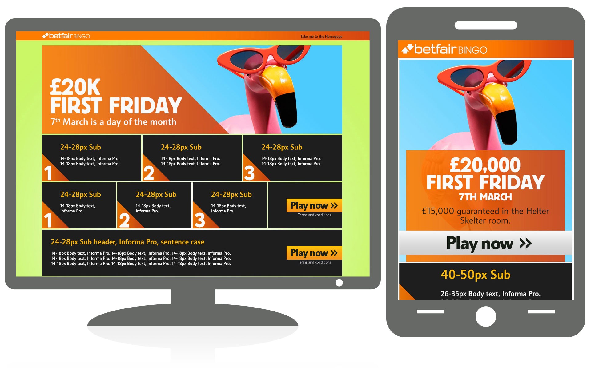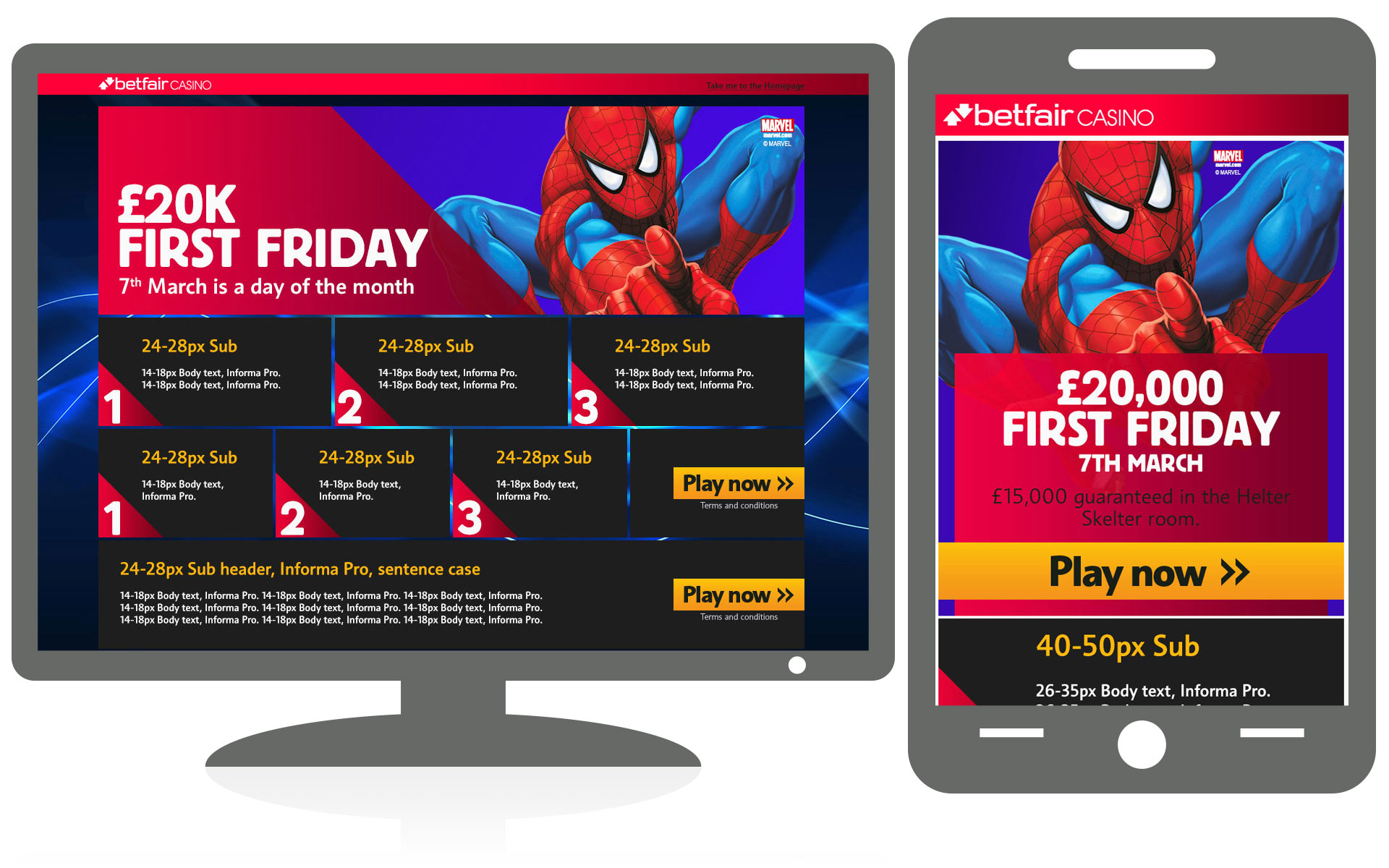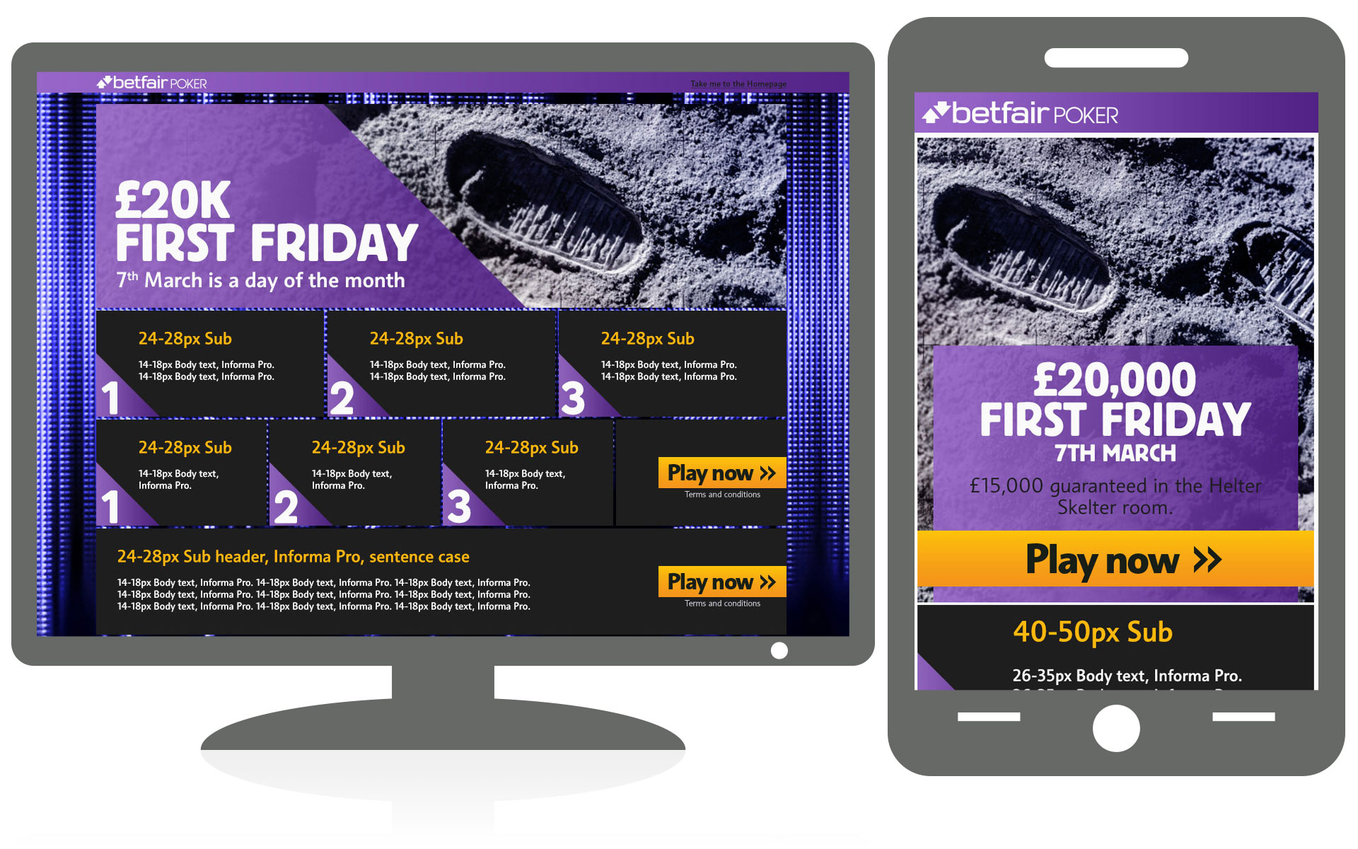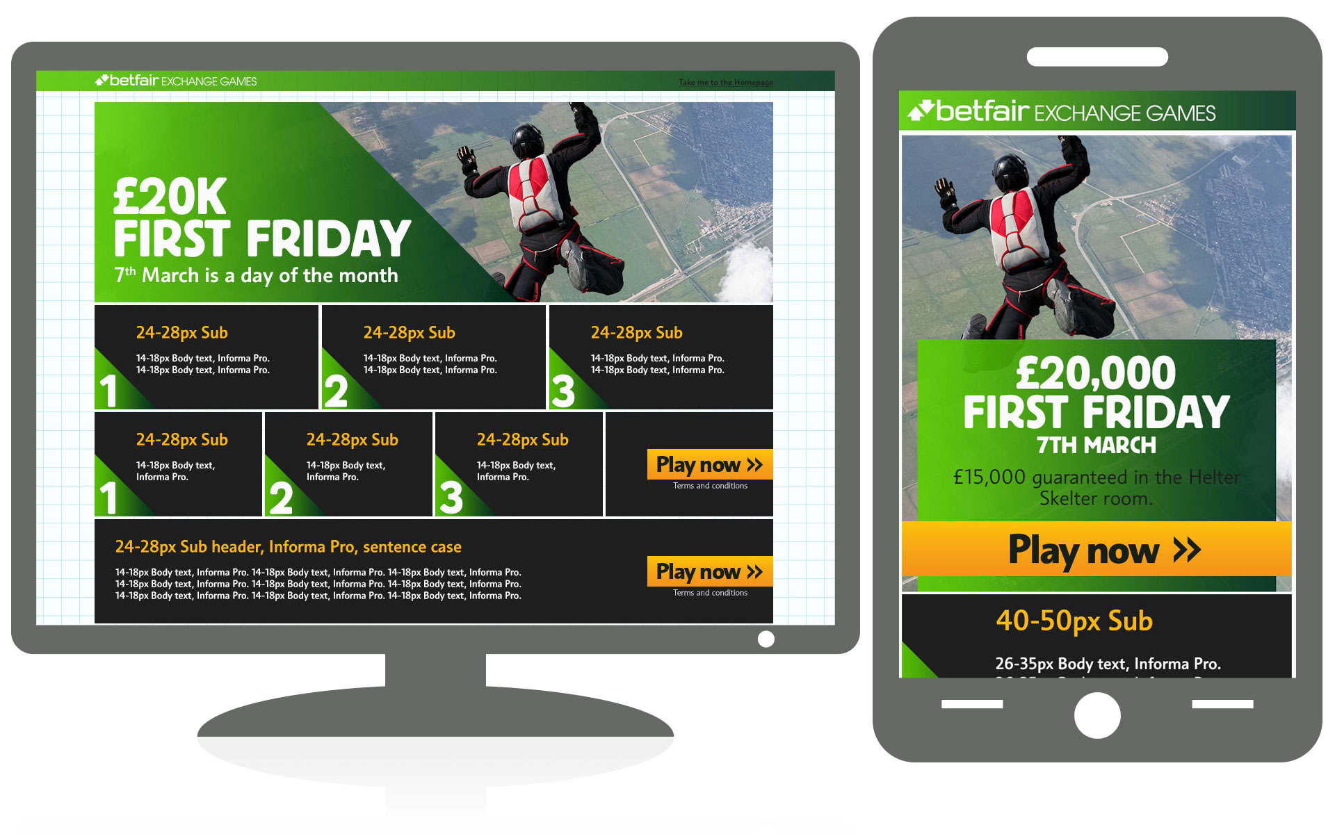To produce a unified promotional language across all gaming products that ties them together as a family. Ensure approach is distinctive, consistent and scale-able. The promotional style has to stand alone for each product in it’s relevant section of the site as well as serve as an entrance into the product via X-Sell promotions.